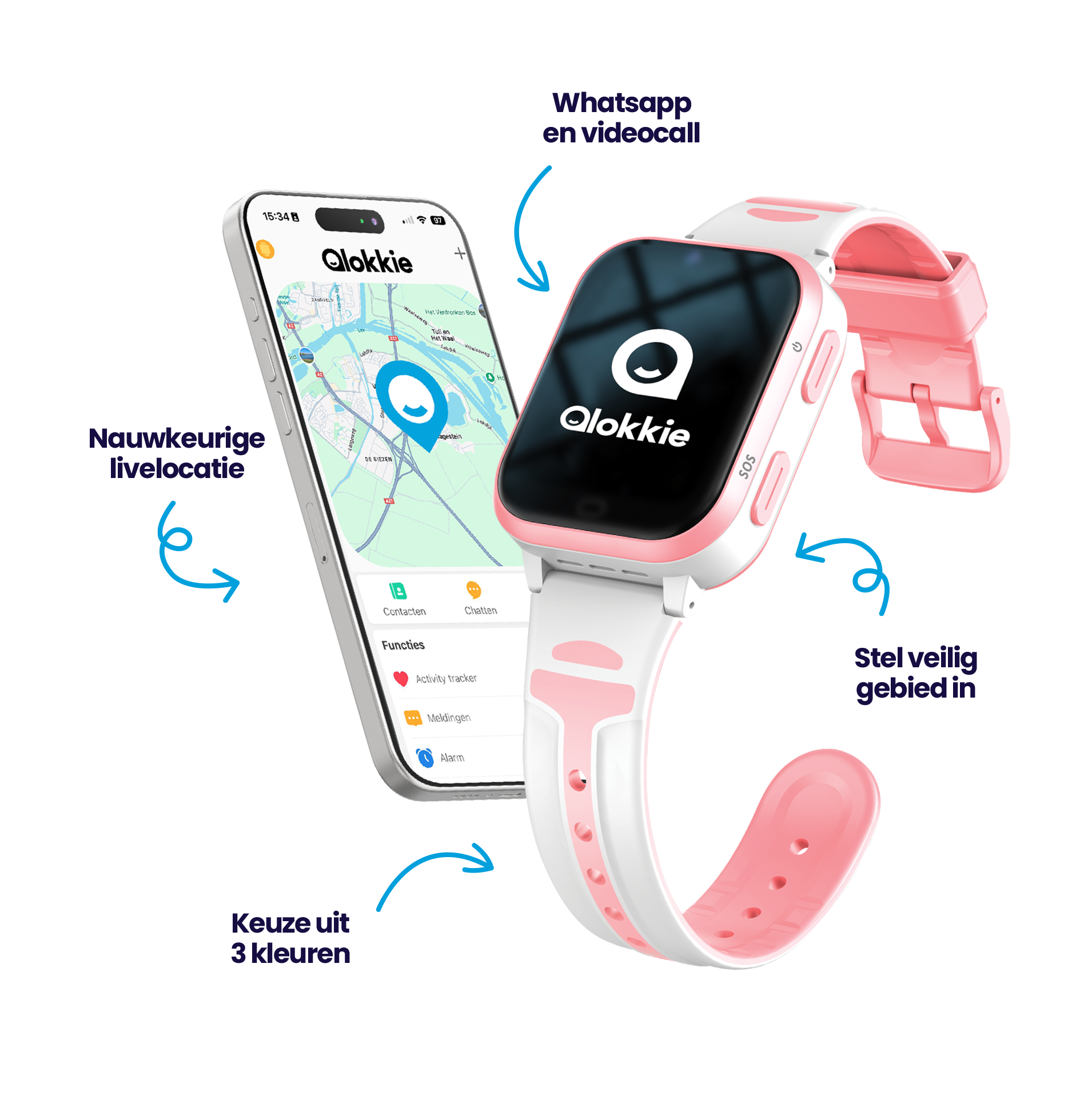 Die Qlokkie GPS-Uhr ist eine clevere Kombination aus Uhr und kompaktem Handy für Ihr Kind. Dank der integrierten SIM-Karte ist die Uhr permanent mit dem Mobilfunknetz verbunden. So können Sie den GPS-Standort Ihres Kindes in Echtzeit über eine benutzerfreundliche App auf Ihrem Smartphone verfolgen .